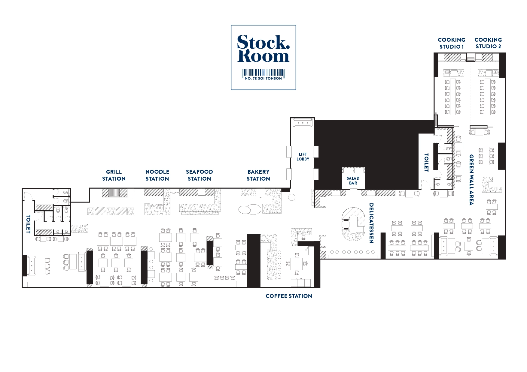 A vibrant dining destination, Stock.Room is designed for lively gatherings, corporate functions and large-scale celebrations. With an expansive 627 sqm layout, the venue accommodates up to 200 guests, offering flexible spaces for every occasion — from buffet feasts to interactive culinary experiences.