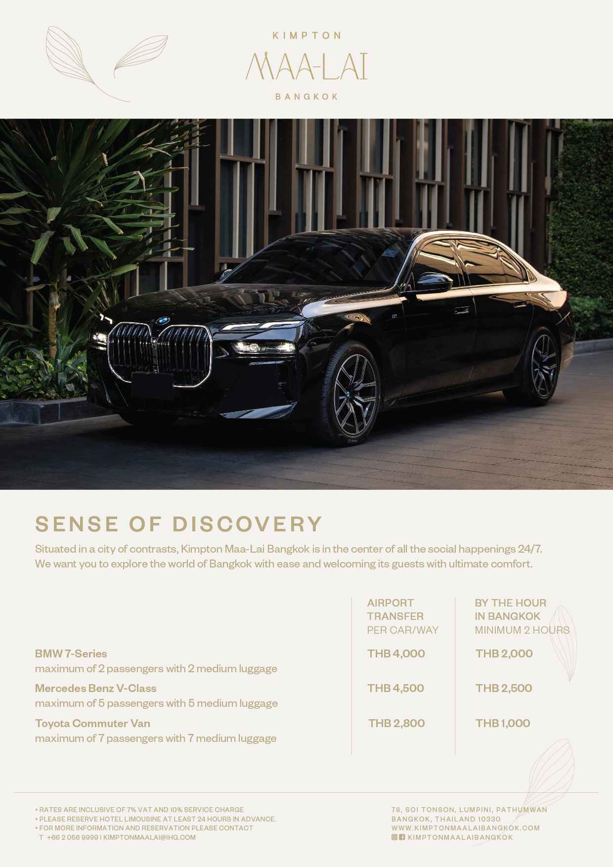 Kimpton Maa-Lai Bangkok offers convenient airport transfer services, ensuring a smooth and comfortable journey to and from the hotel, enhancing your overall travel experience in the heart of the city.